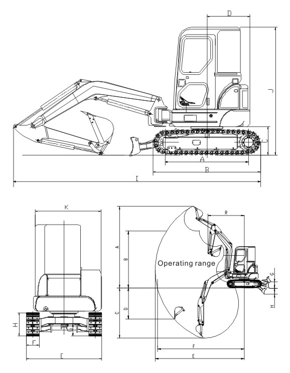 | Operating weight:rubber track / steel track | 4130 / 4140 (kg) |