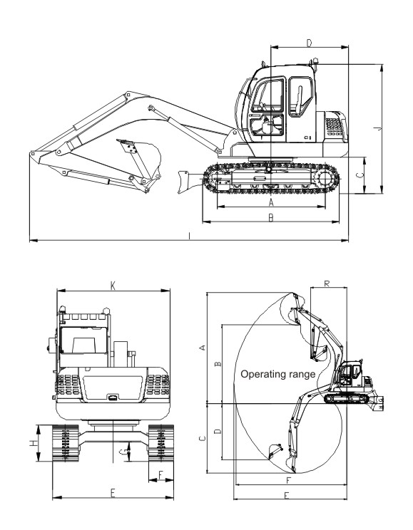 | Operating weight:rubber track / steel track | 7810 / 7860 (kg) |